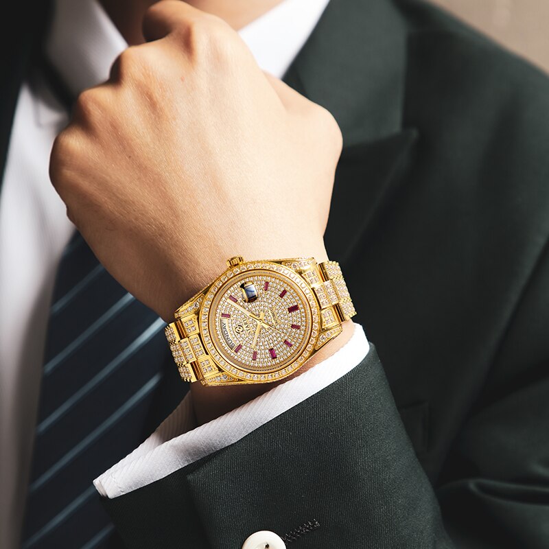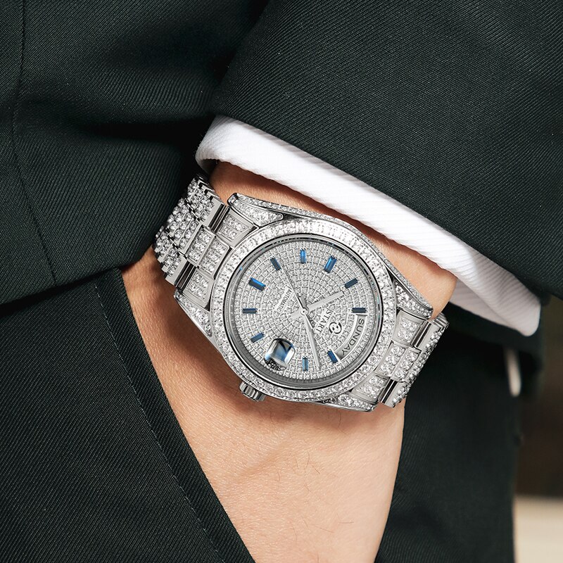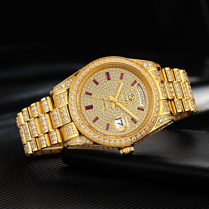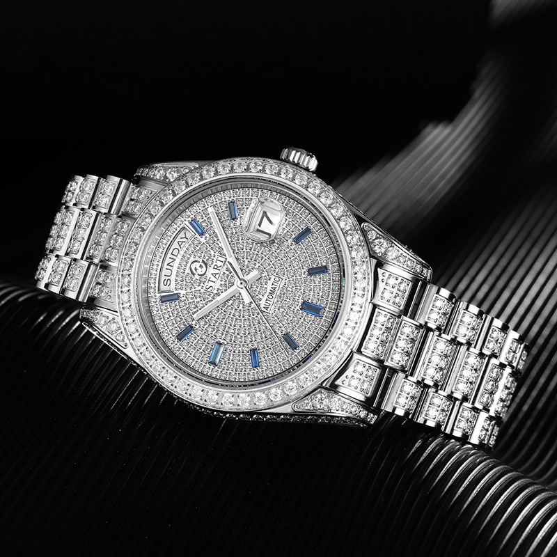 Special features:diamond-encrusted dial,luminous, calendar display, week display, full diamond