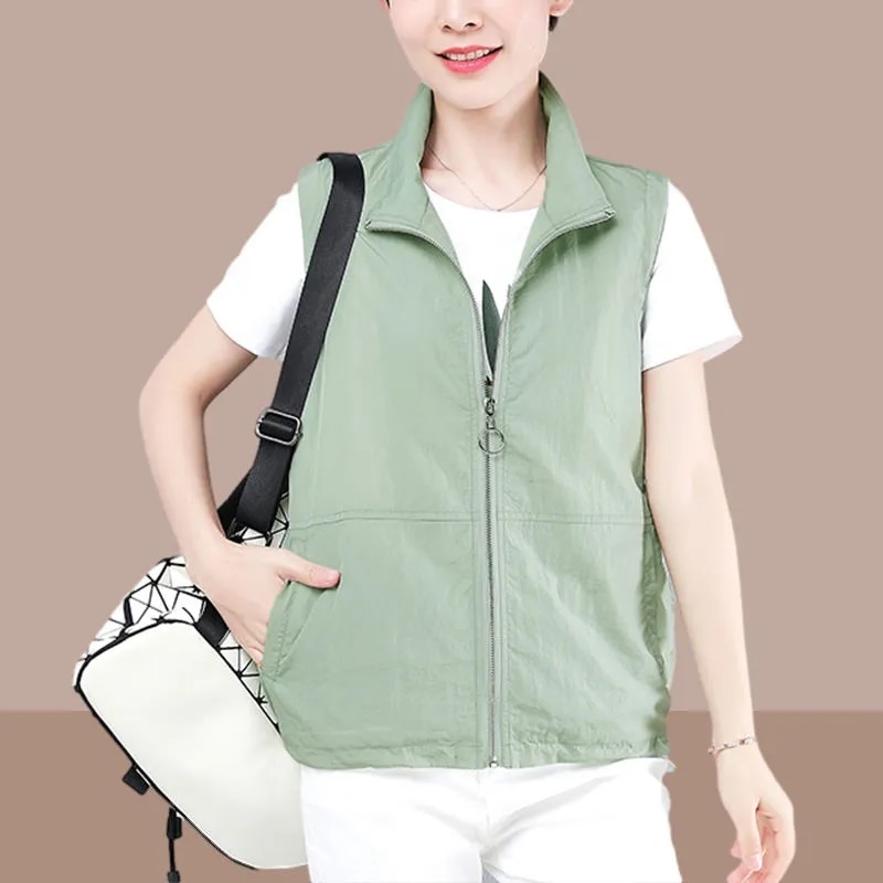 Spring Summer Thin White Vest Women Plus Size 4Xl Casual Basic Sleeveless Jacket Cardigan Basic Turndown Collar Zipper Waistcoat