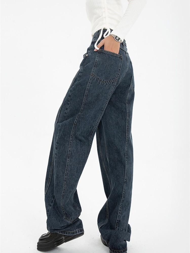 Dark Blue Womens Jeans High Waist Vintage Straight Baggy Denim Pants Streetwear American Style Fashion Wide Leg Denim Trouser