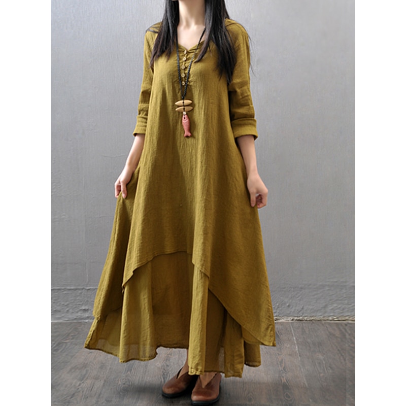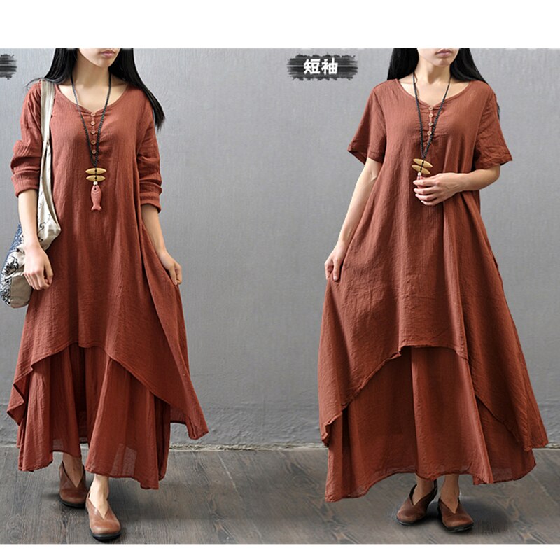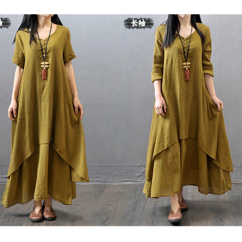 MOONBIFFY Elegant Cotton Linen Dresses for Women Mori Girl Style Casual Dress Plus Size Loose Long Sleeve Robe Club Outfits