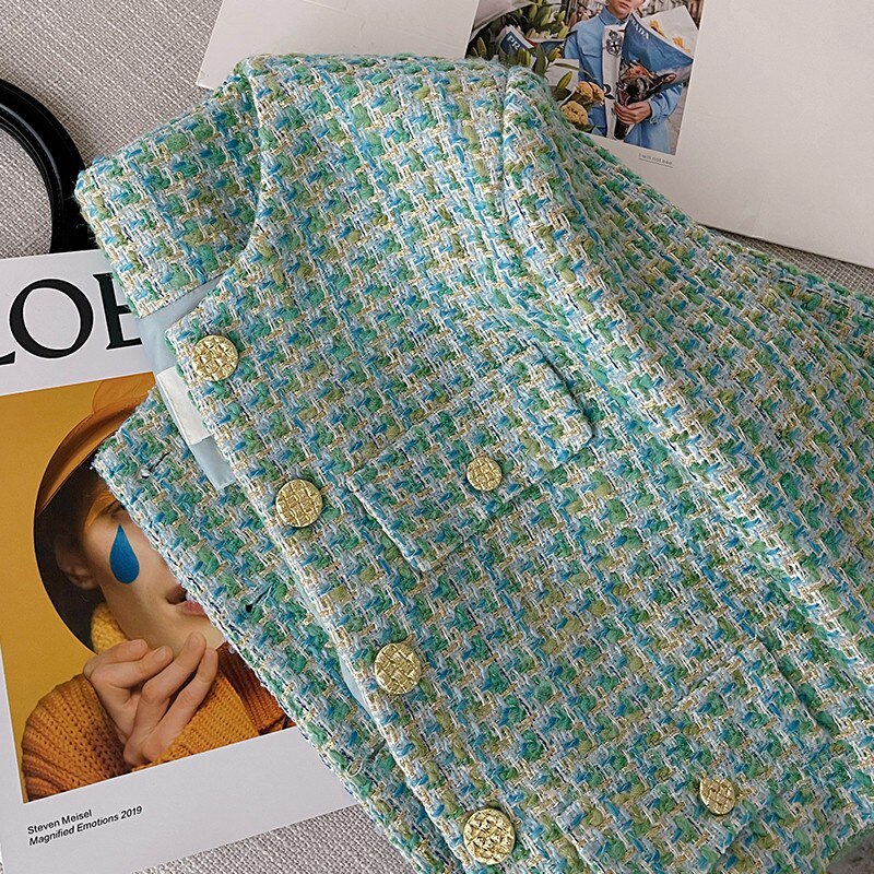 Heavy Industry Light Luxury High Sense Top Women's Jacket 2023 Spring New Plaid Tweed Temperament Short Small Fragrant Coat