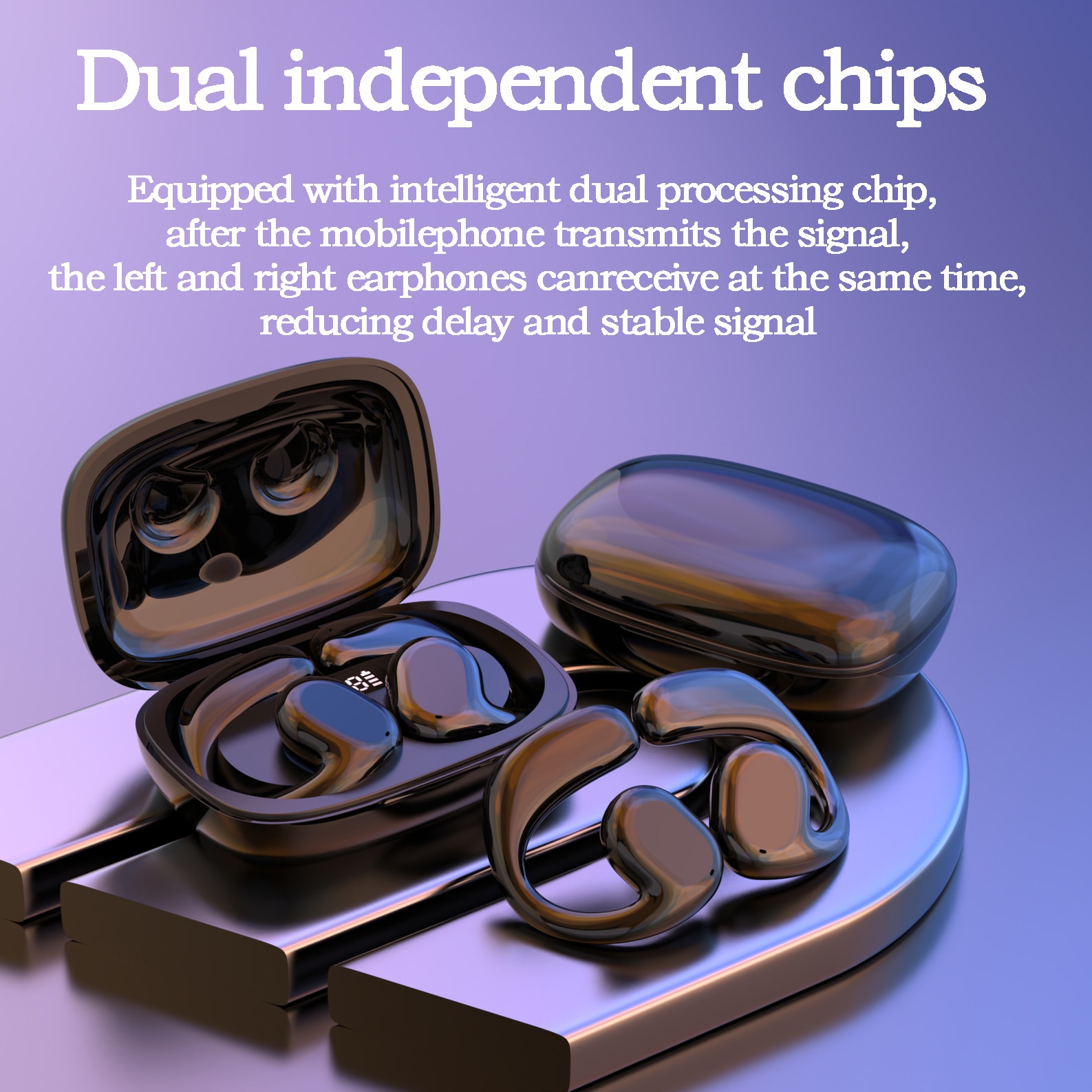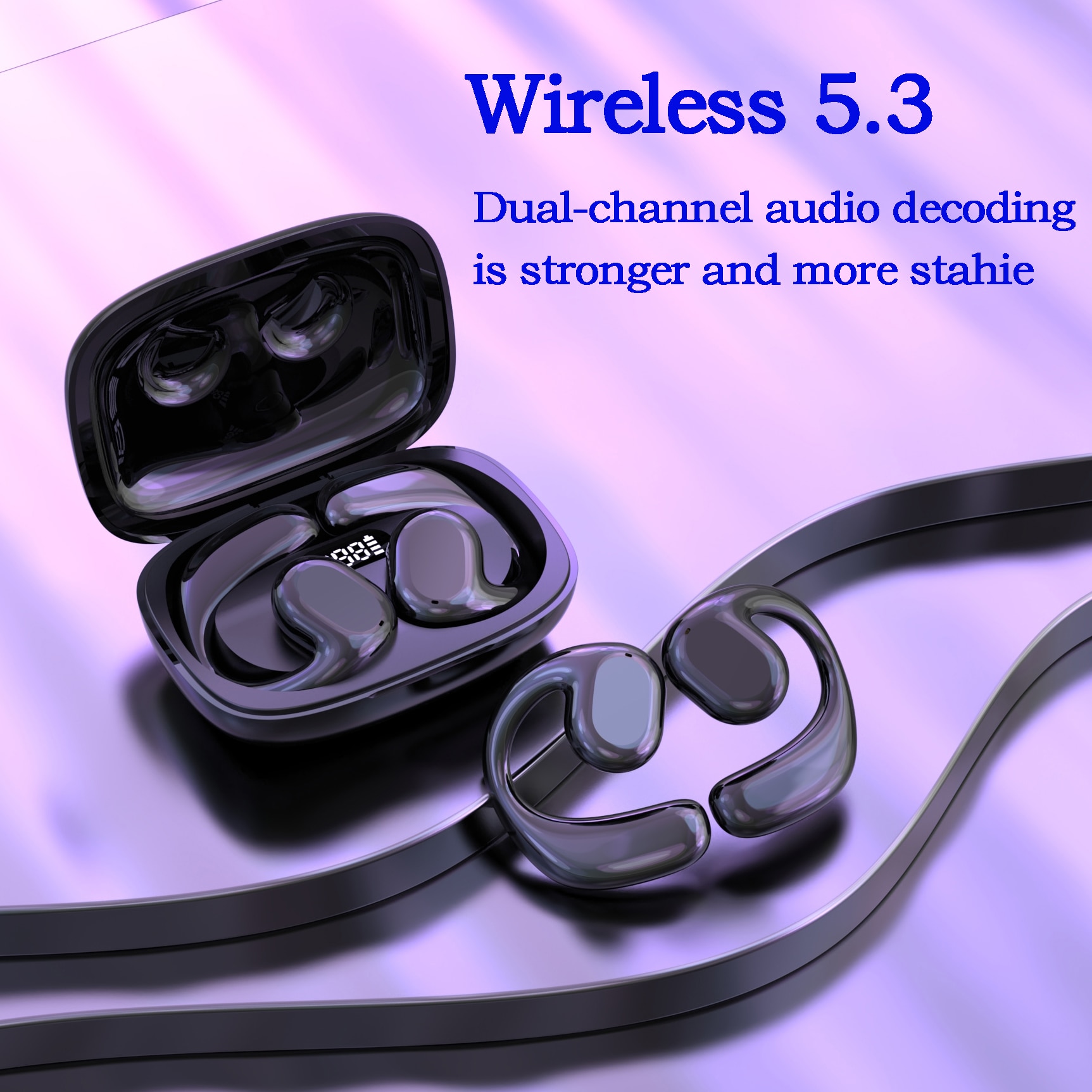 5.3 Bluetooth Earphones Wireless Headphones TWS Earclip Design LED Earbuds Ear Hook Sports Headset with Mic