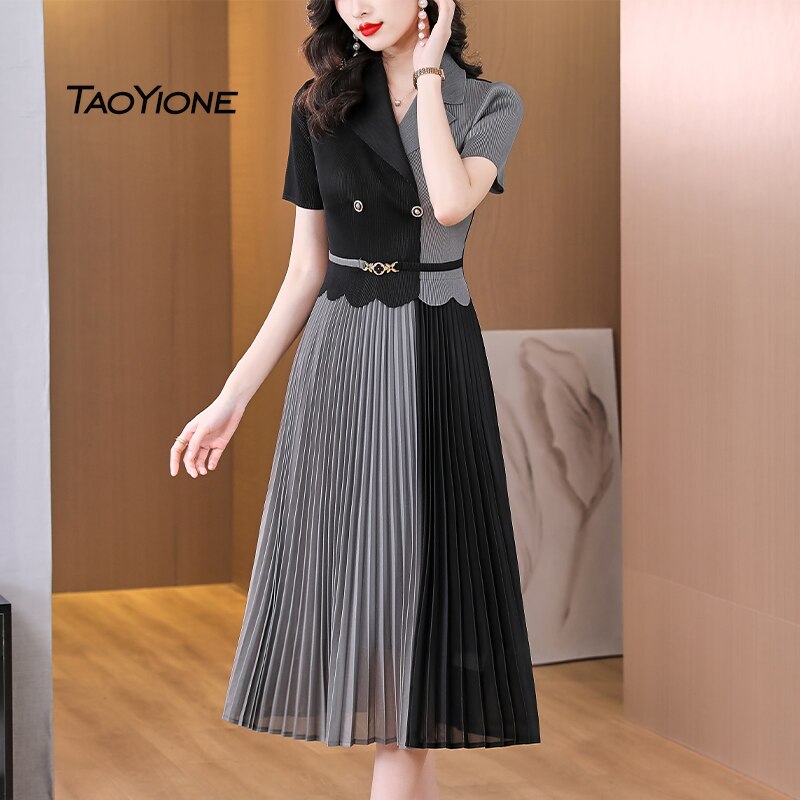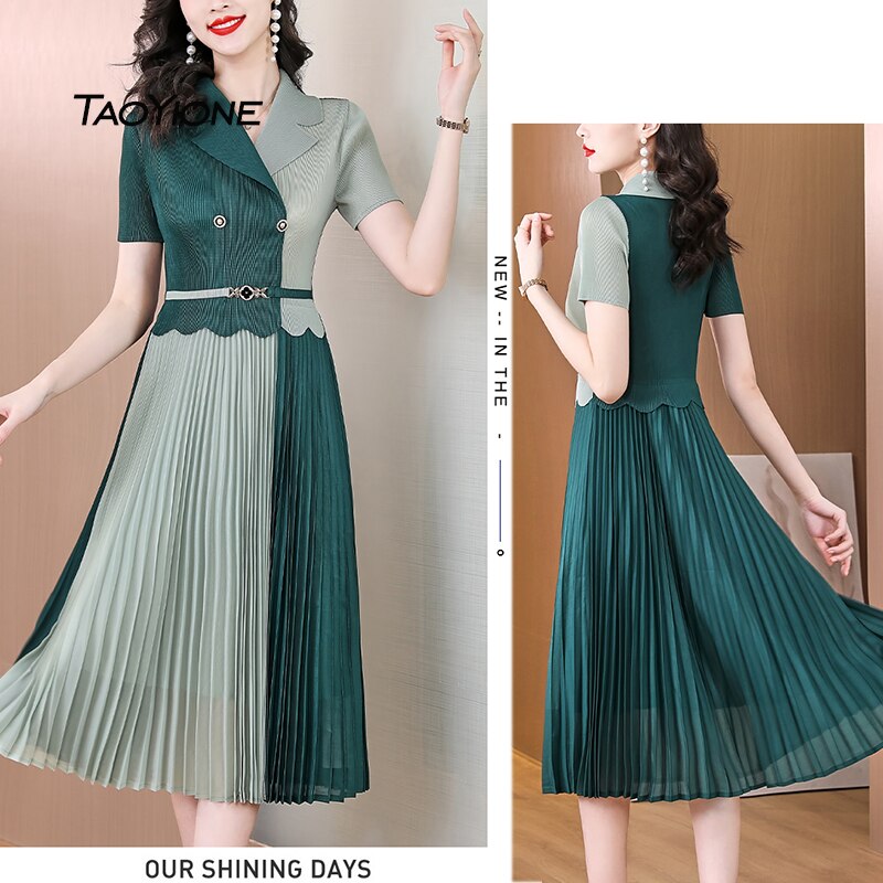 2023 Vestidos Vintage Sweet Chiffon Elegant Summer Solid Pleated Midi Short Sleeve Dress Female Robe Women's Spring Lady Dresses