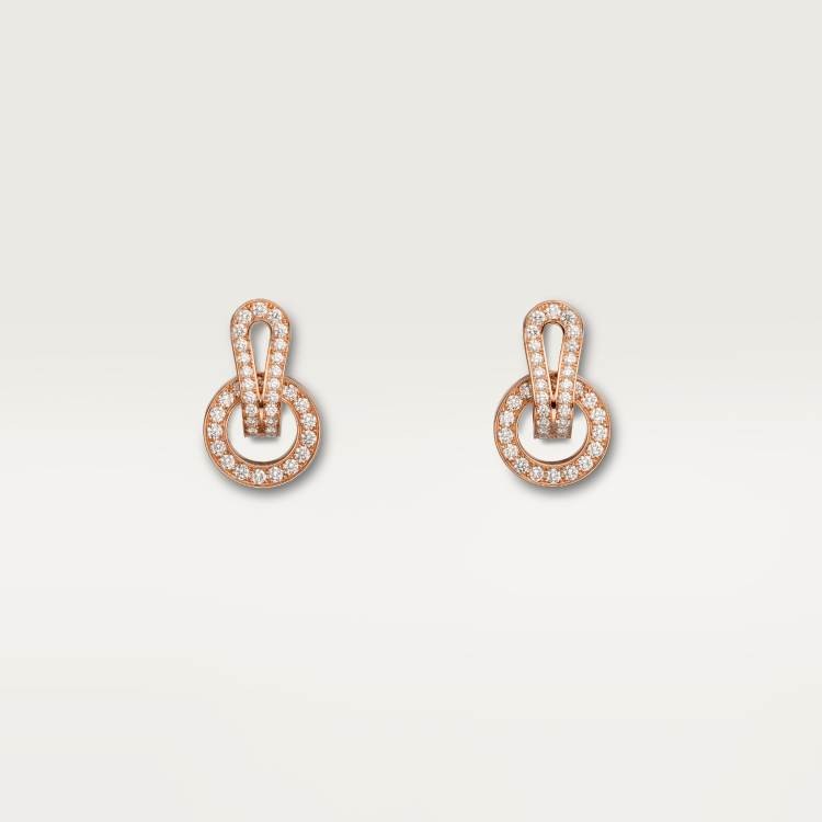 AGRAFE earrings, 750‰ rose gold, each earring is set with 42 round brilliant-cut diamonds, totaling 1.24 carats.