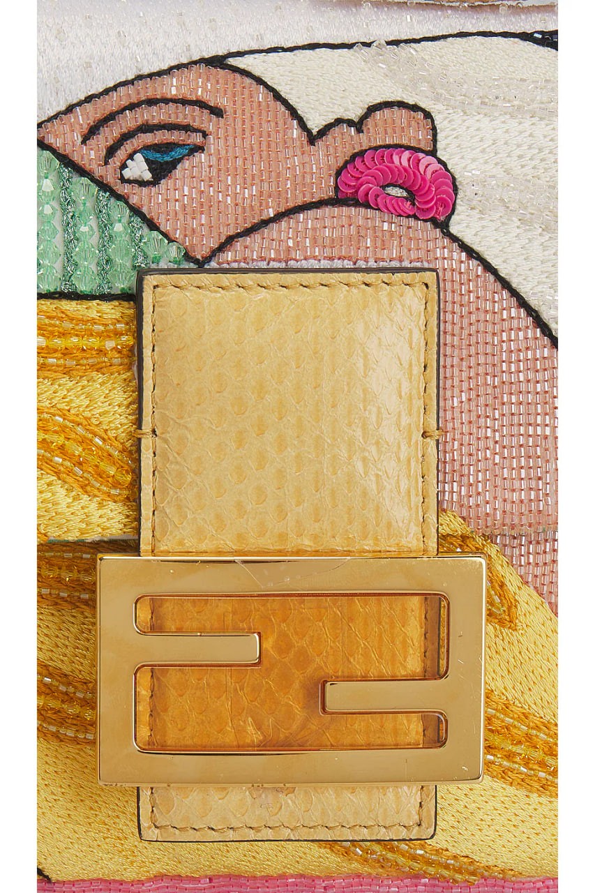 Beaded embroidery with gold-tone hardware and satin lining