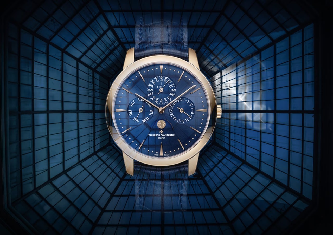 This 18K pink gold watch is equipped with an ultra-thin self-winding movement, its thickness is only 4.05 mm, and it is equipped with an elegant perpetual calendar display, which can operate accurately until the year 2100. The 18K gold moon phase is even more eye-catching on the blue dial, which is made of champlevé enamel against the sky background and decorated with two hand-decorated moons.