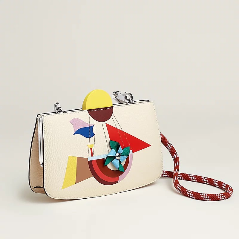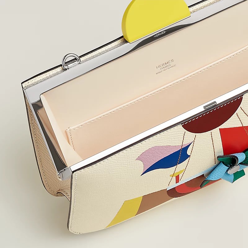 Shoulder bag in Epsom calfskin, Mysore goatskin and Swift calfskin with detachable shoulder strap, 1 main compartment, 2 interior pockets, palladium-plated hardware.